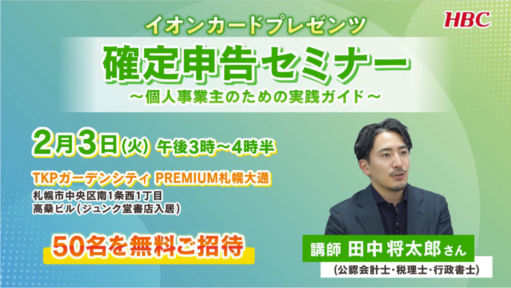 2026年2月3日には、北海道放送が主催されるセミナーで確定申告について講演させていただきます。
